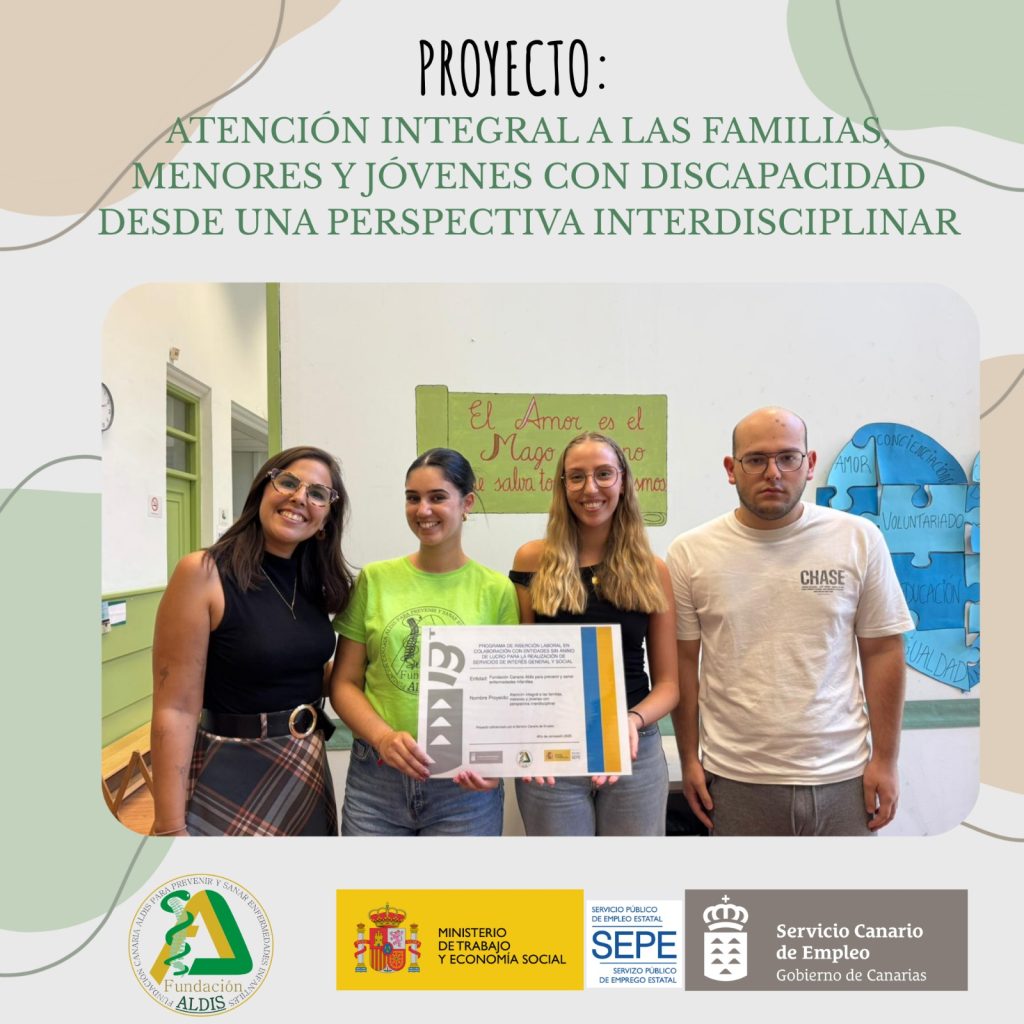 Atención Integral a las familias, menores y jóvenes con discapacidad desde una perspectiva interdisciplinar El pasado lunes 27 de octubre dimos comienzo al proyecto «Atención Integral a las familias, menores y jóvenes con discapacidad desde una perspectiva interdisciplinar«, financiado por el Servicio Canario de Empleo bajo la línea de subvenciones destinada al desarrollo de Programas […]