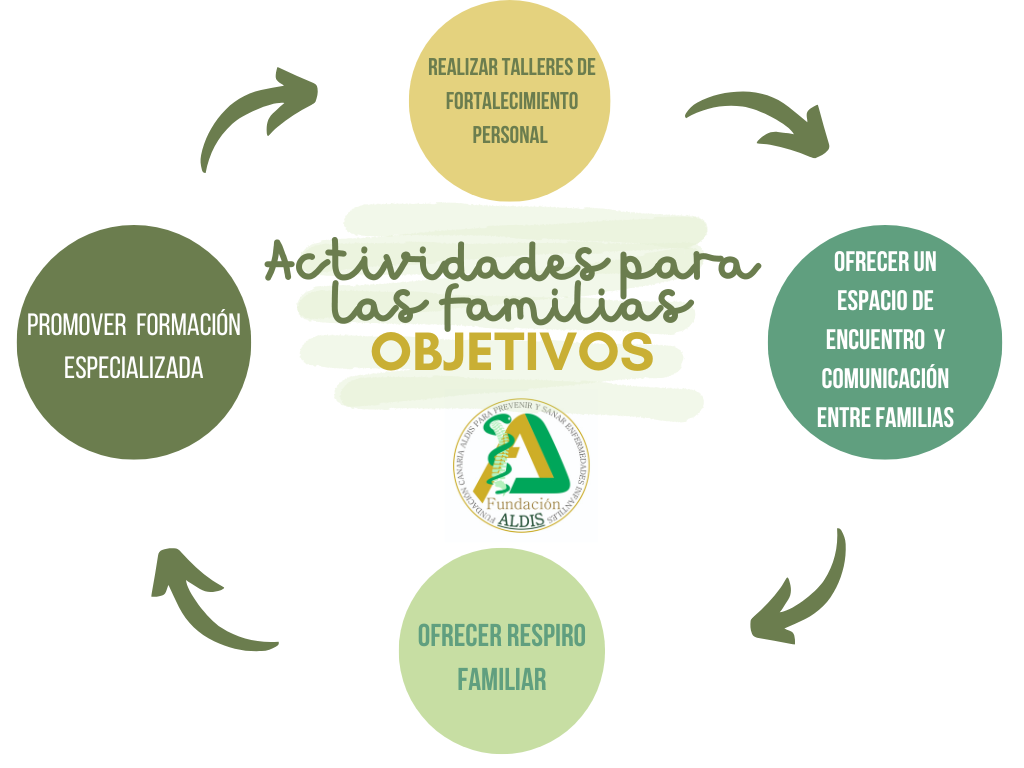 Se realizan actividades de formación y ocio para las familias de la entidad, estableciendo acciones que se ajusten a sus demandas y/o necesidades y a los recursos de la fundación. Se establecen talleres centrados en los miembros de la unidad familiar, en su fortalecimiento personal, bienestar, autoestima, entre otras cuestiones.