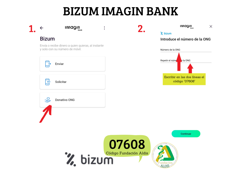 2. Código ONG: introducir los 5 dígitos de la ONG, en el caso de Aldis el código es 07608.
